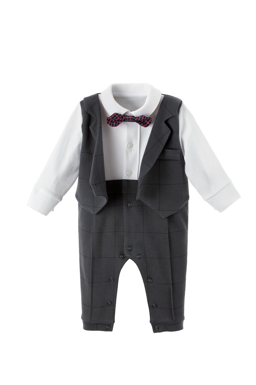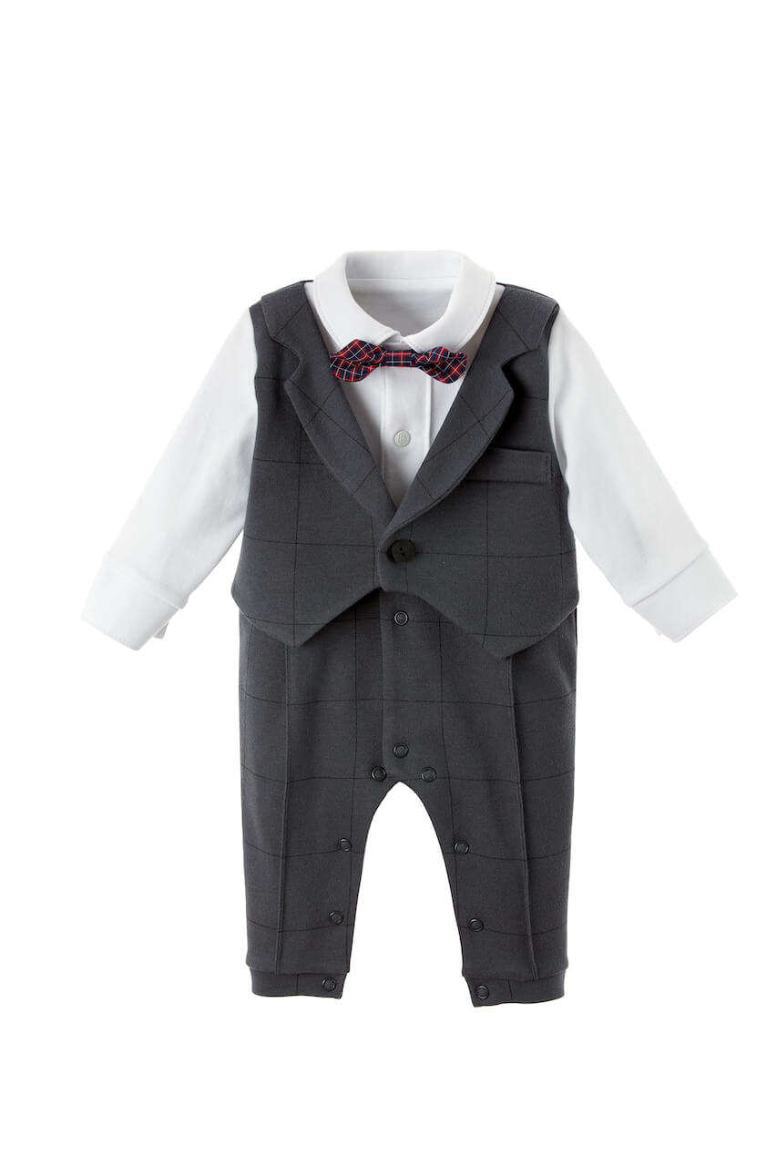 - Cotton babygrow with a checkered vest