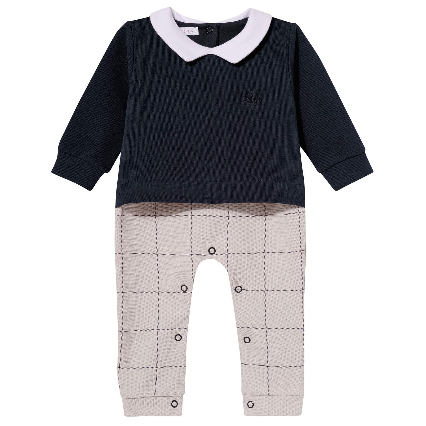 An elegant unzipped babygrow for boys perfect for a newborn baby. Popper fastenings with nickel-free snaps for easy dressing and changing. A babygrow made from the 100% soft jersey cotton, 100% lacosta cotton, ensuring safety for your baby. Soft and gentle on delicate skin, it provides exceptional comfort in all weather conditions. Perfect formal and special occasions.