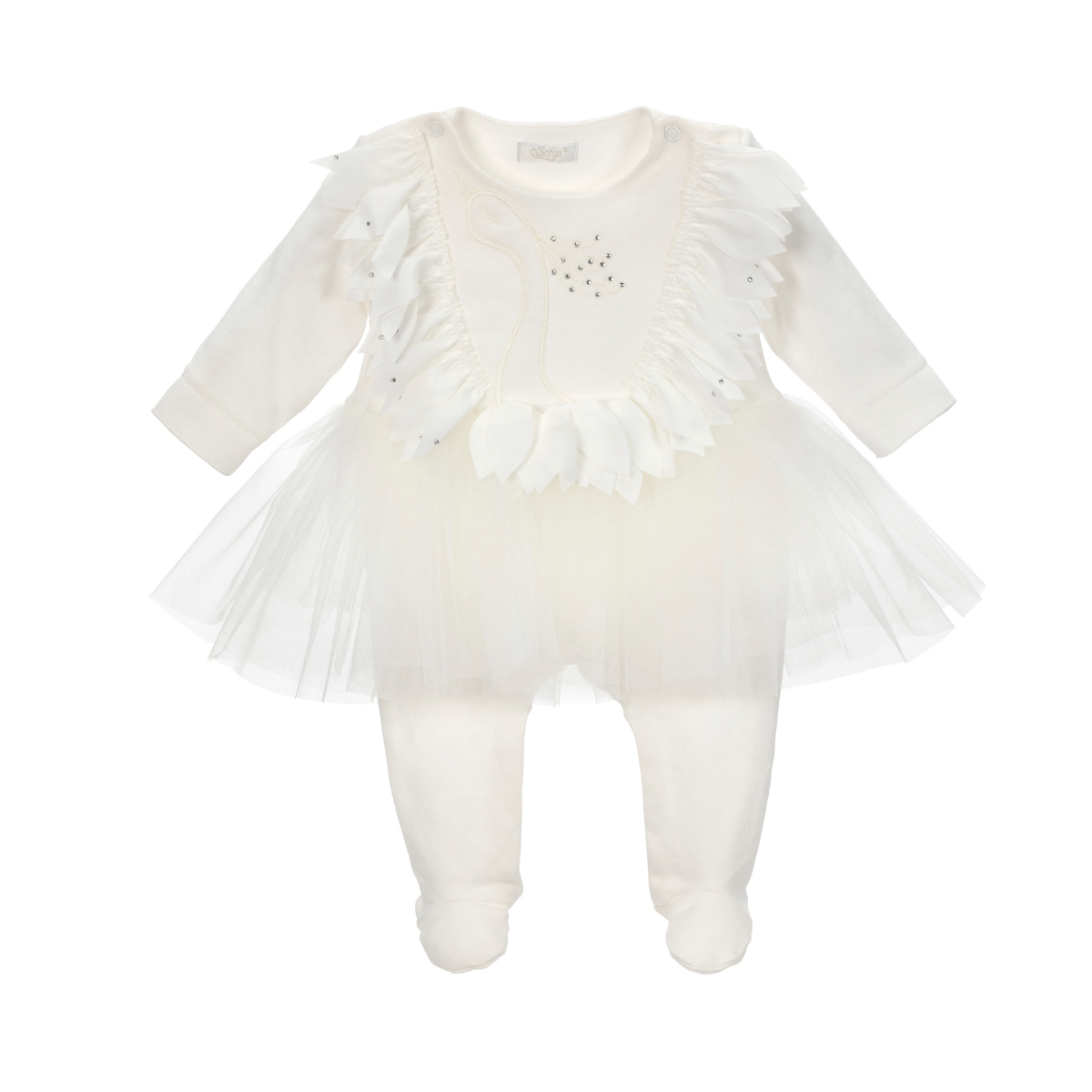 - Cotton babygrow with peacock print and tulle skirt for a girl