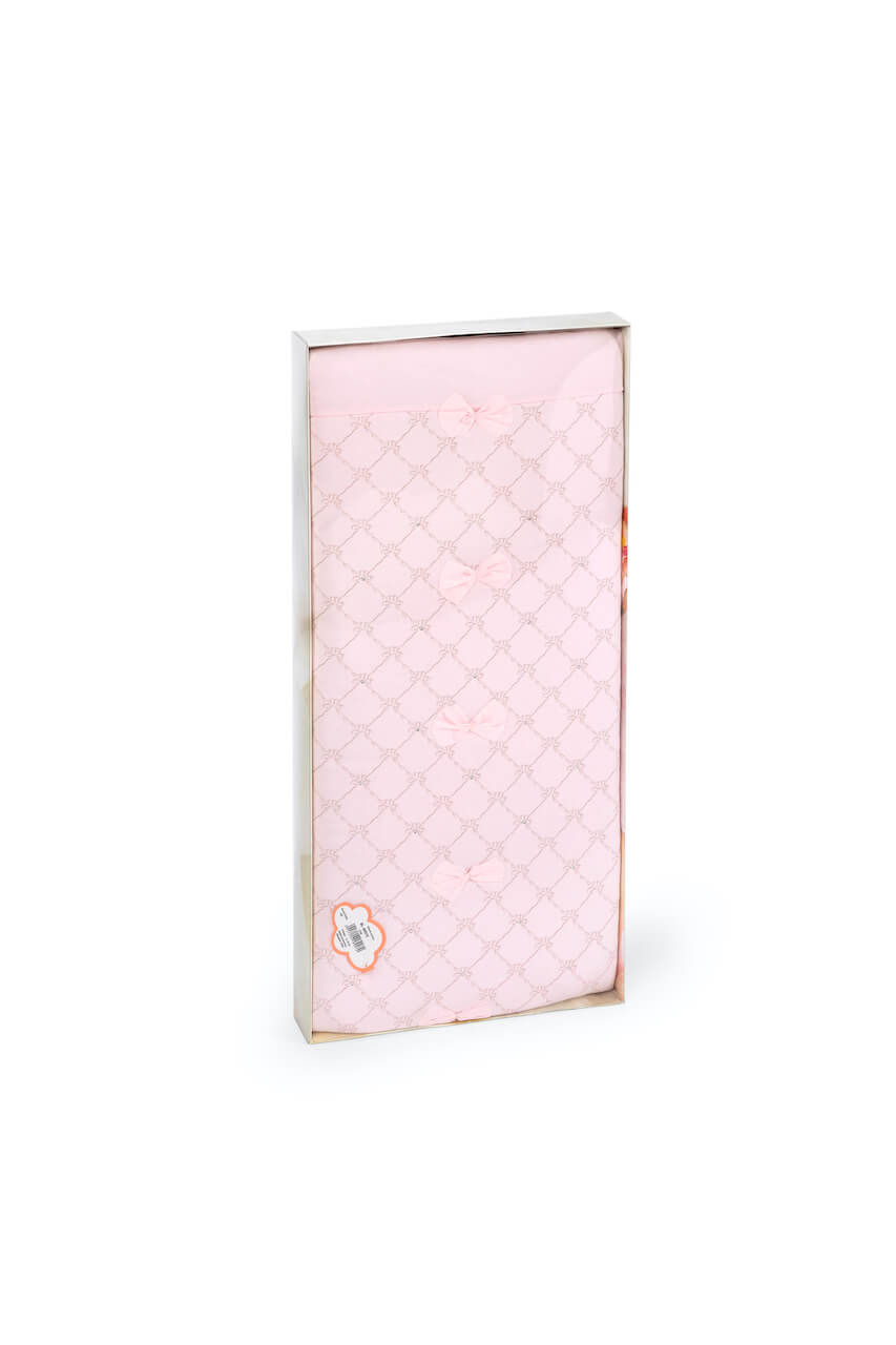 Luxurious baby girl blanket, ideal for a gift and as an essential part of the first baby layette. Made of 100% soft and delicate cotton and filled with anti-allergenic fibers, it will provide a comfortable environment for the baby on colder days.