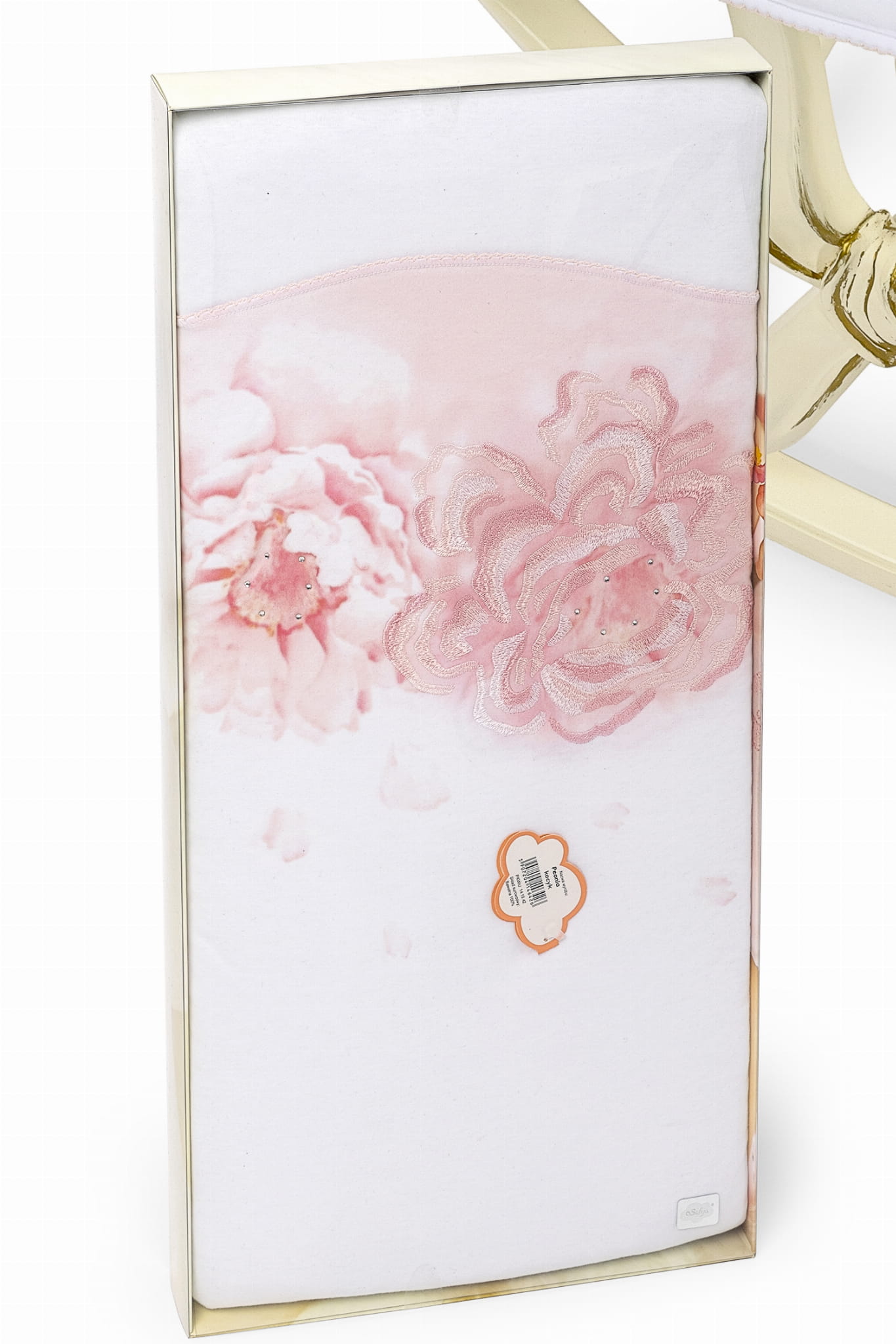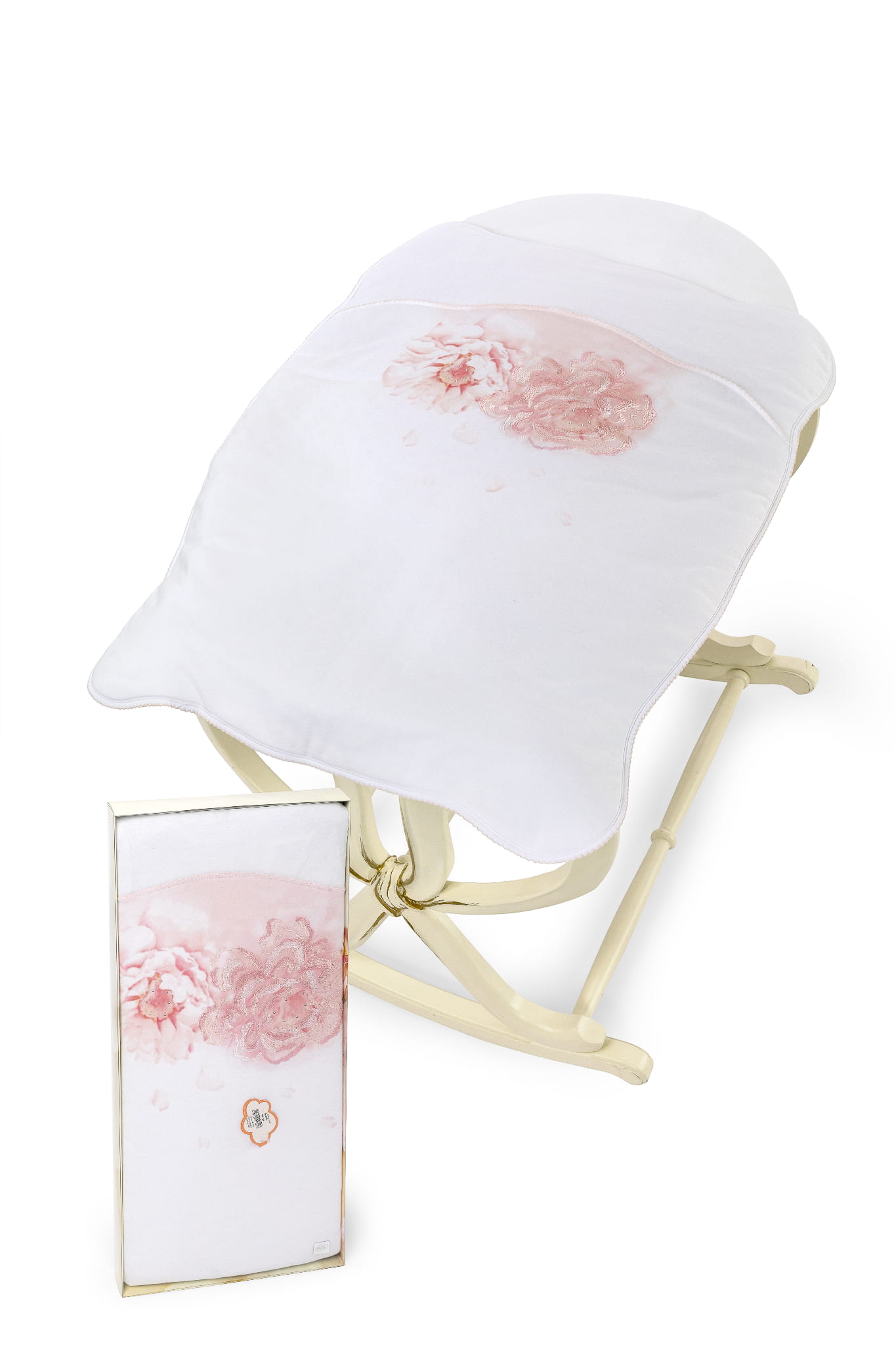 Luxurious baby girl blanket, ideal for a gift and as an essential part of the first baby layette. Made of 100% soft and delicate cotton and filled with anti-allergenic fibers, it will provide a comfortable environment for the baby on colder days.