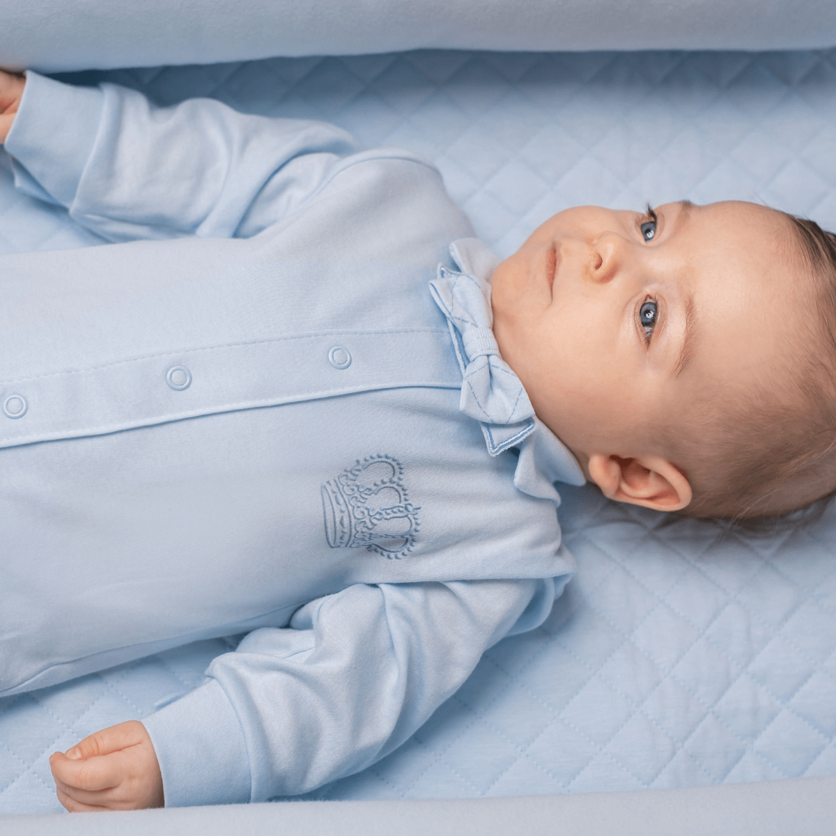 Elegant cotton bodysuit perfect for a newborn baby. Popper fastenings with nickel-free snaps for easy dressing and changing. Made in soft and stretchy 100% cotton with Oeko-Tex Standard 100 certificate.