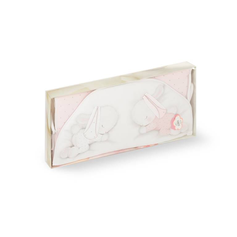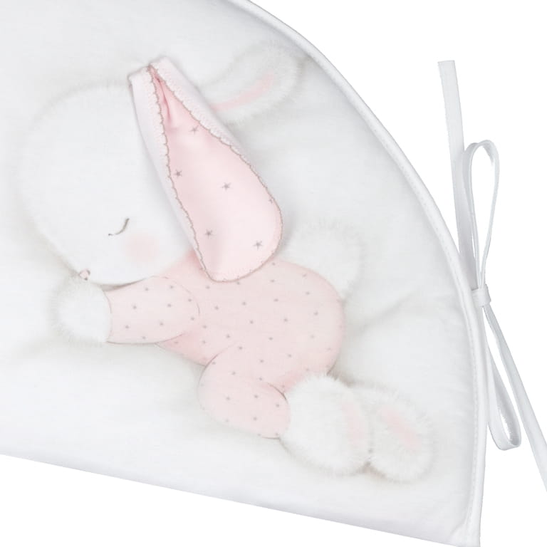 Bunny print bumper with pink ornaments that includes 3 pieces.
