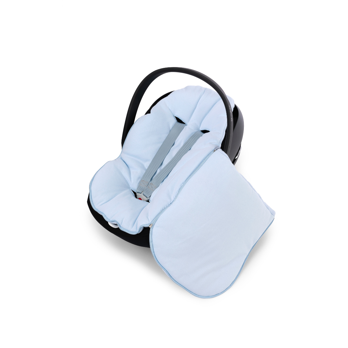 The child can comfortably travel in it on cooler days. No need to put on a winter suit and overheat your child. Made of 100% cotton with Oeko-Tex certificate. Two layers of soft and breathable cotton. Antiallergic filling inside.