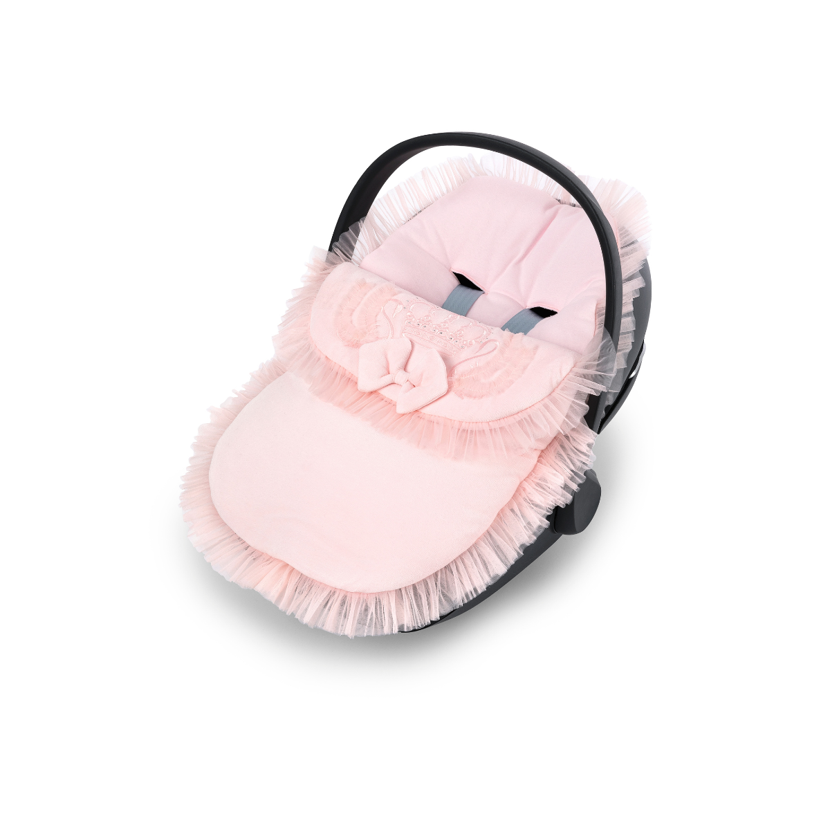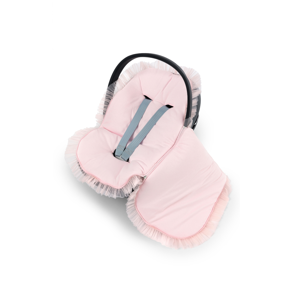 The child can comfortably travel in it on cooler days. No need to put on a winter suit and overheat your child. Made of 100% cotton with Oeko-Tex certificate. Two layers of soft and breathable cotton. Antiallergic filling inside.