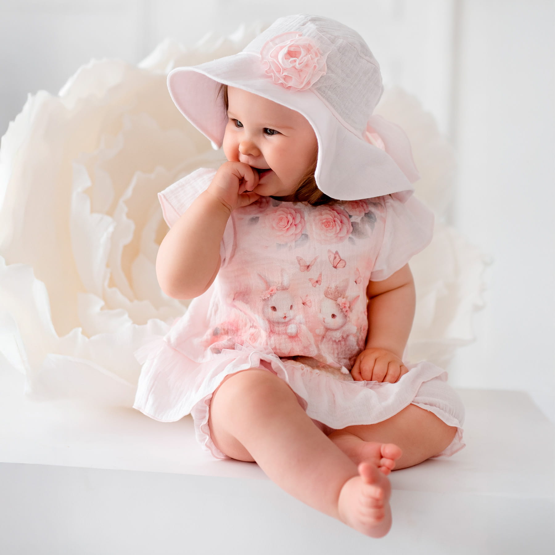 The NEL collection brings to life a fairytale vision filled with softness, charm, and subtle details. Created especially for baby girls, it features carefully coordinated pieces crafted from 100% cotton muslin and cotton knit — breathable fabrics that are gentle on sensitive skin.