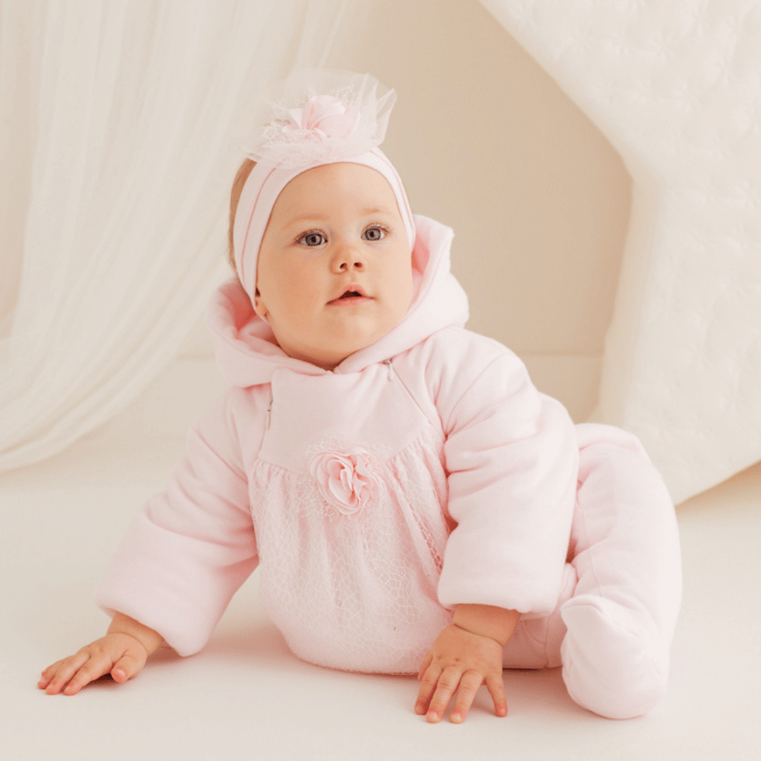 Insulated baby set by Sofija Premium Babywear plays an essential part in a young lady's clothing in winter. Fastened all the way with a zipper and anti-allergenic fasteners, making it easy to quickly and conveniently dress and undress the baby. It also facilitates diaper service.