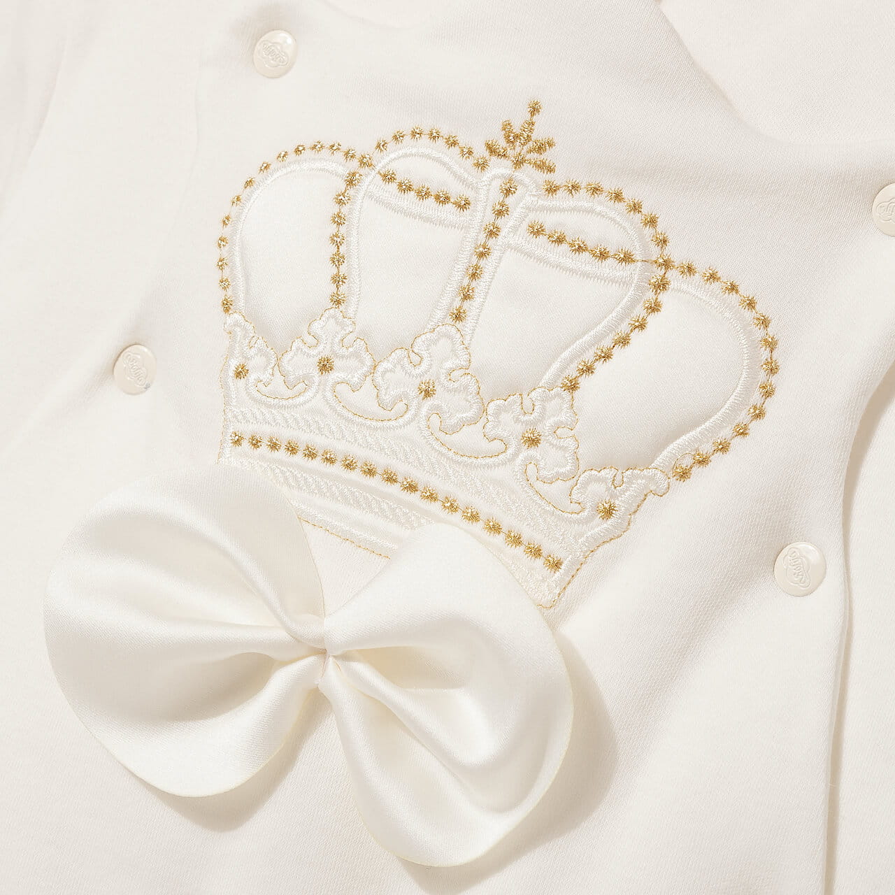 Decorated with beautiful crown embroidery and a satin bow.