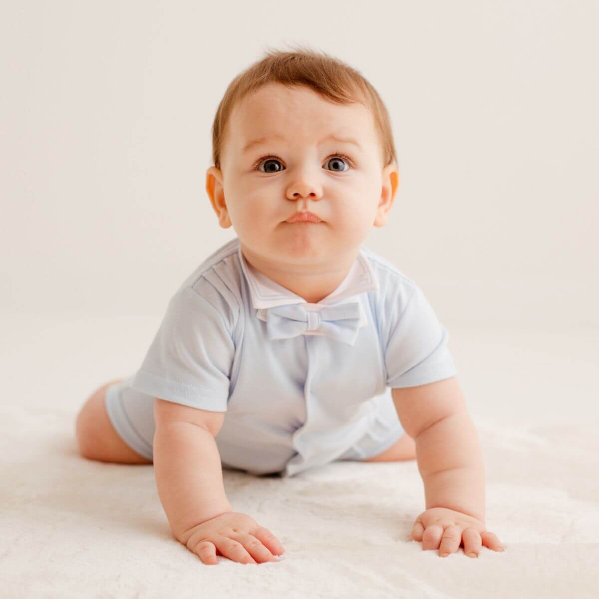 Elegant babygrow for a boy. Soft and breathable cotton 100% Oeko-Tex certified.