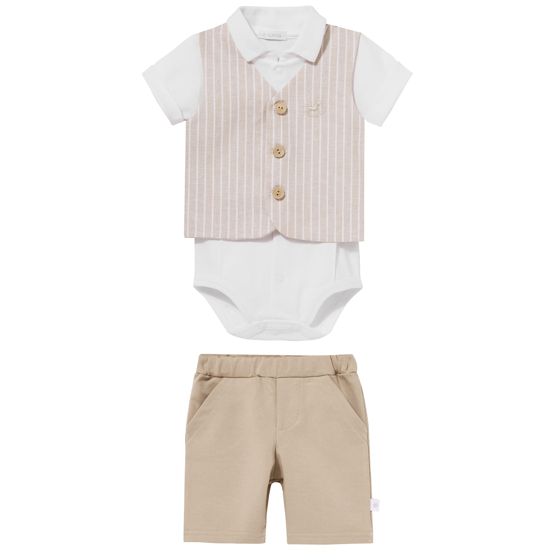 Set 3 pcs (bodysuit s/s, vest, shorts) JAKE Beige