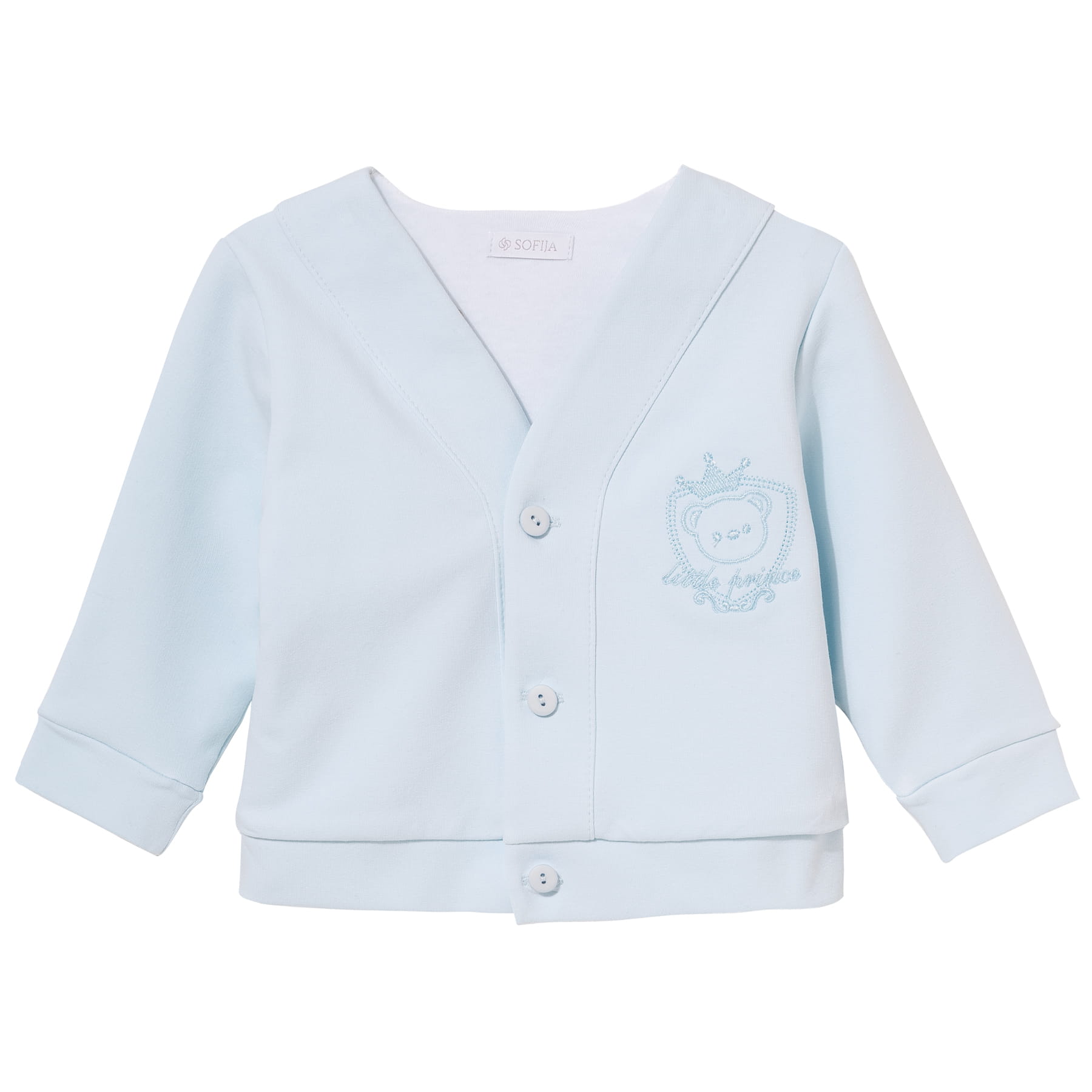 Comprising a cardigan, T-shirt and trousers, this charming ensemble blends everyday comfort with a gentle royal touch.